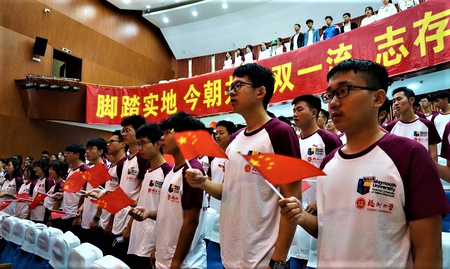 典礼在庄严雄壮的国歌声中拉开序幕。因受疫情防控影响,爱尔兰国立梅努斯大学嘉宾未能莅临典礼,改为视频致辞形式。爱尔兰驻华使馆临时代办Therese Healy(何莉)女士、爱尔兰国立梅努斯大学Aidan Mulkeen副校长以及多位外方教师代表分别向2020级新生的到来表示热烈欢迎,鼓励他们认真学习,在未来勇敢面对挑战,不断提升自我;并同时由衷感谢长期以来做爱影片