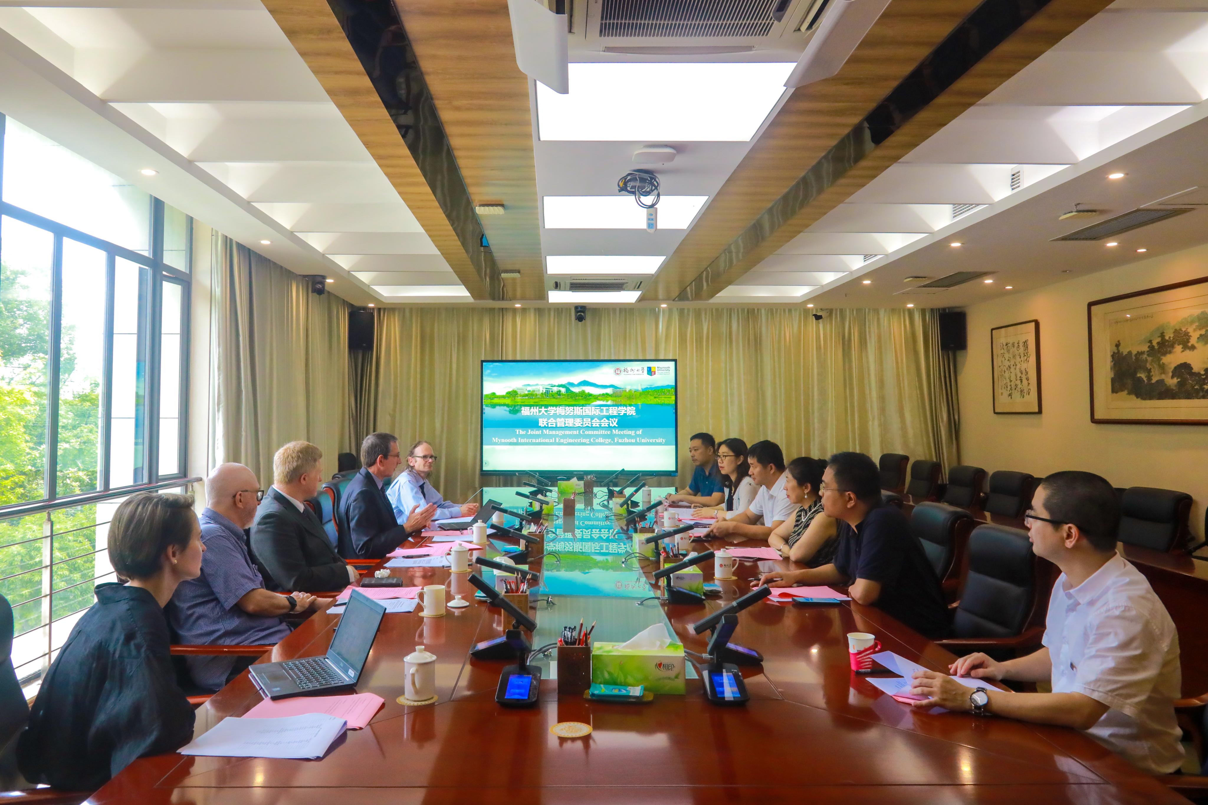 于行政南楼333召开联合管理委员会会议,王心晨副校长出席会议并致欢迎词。梅努斯大学Aidan Gerard Mulkeen常务副校长主持会议,梅努斯大学副校长Ronan John Farrell及其他联合管理委员会委员参加会议。