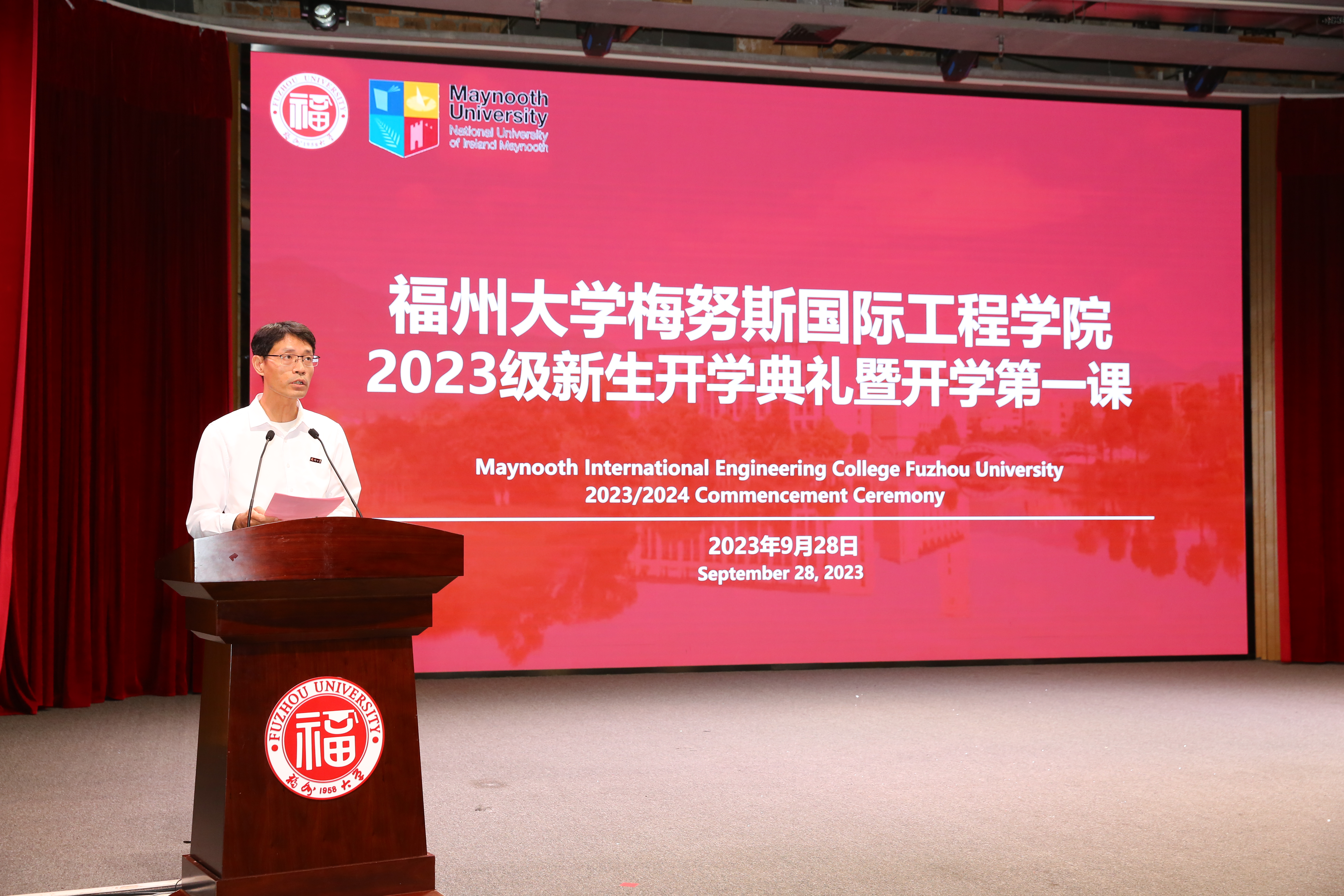 随后,爱尔兰国立梅努斯大学副校长Patrick McCole教授致辞。他强调,“千里之行,始于足下”,伟大成就始于小而艰苦的行动,希望新生们能够能拥有批判思维和过硬知识,用自身努力开创美好未来。