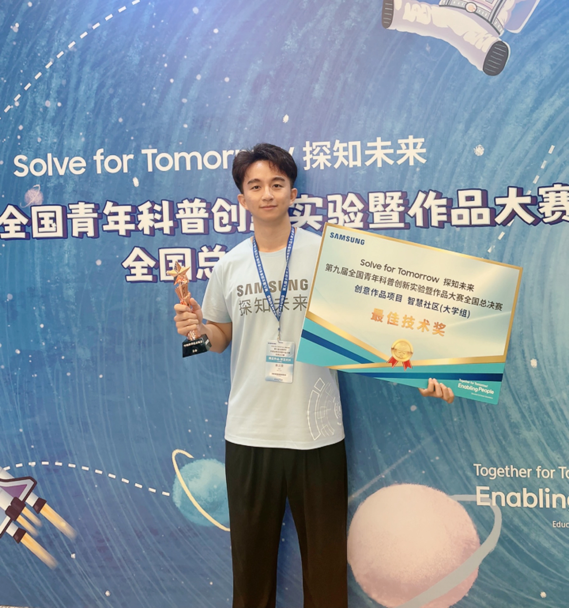 他是学以致用的实践者。他充分运用专业知识,积极投身创新实践,作为第一负责人完成多项科研项目。他领导项目《DefenderIoT — Leading the New Generation of Industrial Inspection》获得第9届全国青年科普创新实验暨项目大赛最佳技术奖,以及2023年中国国际大学生创新大赛国家级铜奖。他还曾荣获2023年美国大学生数学建模竞赛特等奖提名、3S杯大学生物联网技术与应用大赛国家级二等奖。