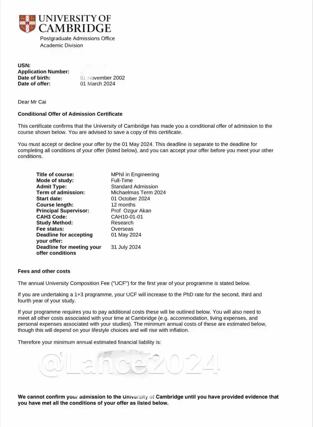 20级自动化专业蔡汉霖同学成功斩获世界顶级名校——英国剑桥大学(QS世界排名第2)的录取offer!!!为做爱影片