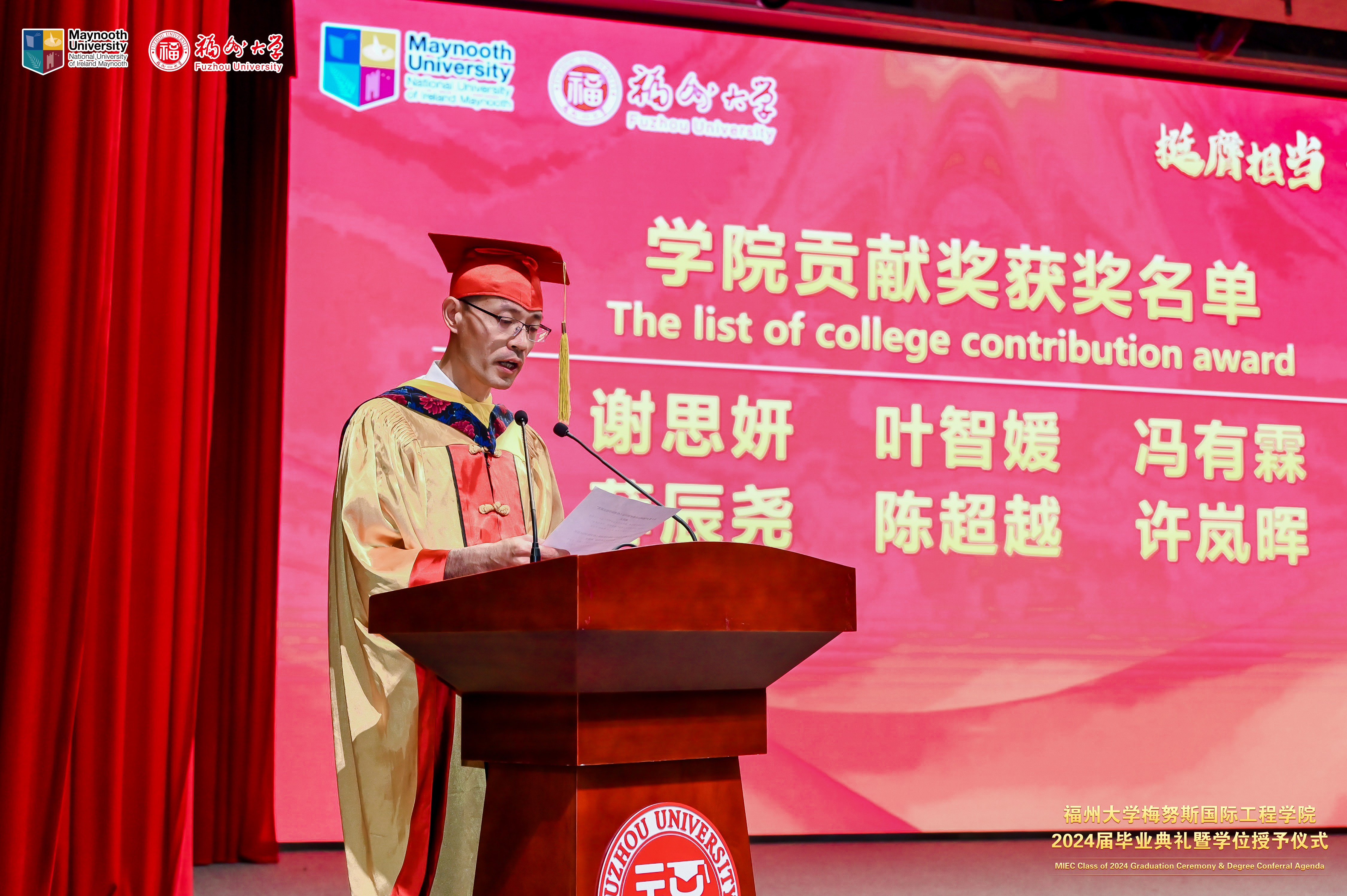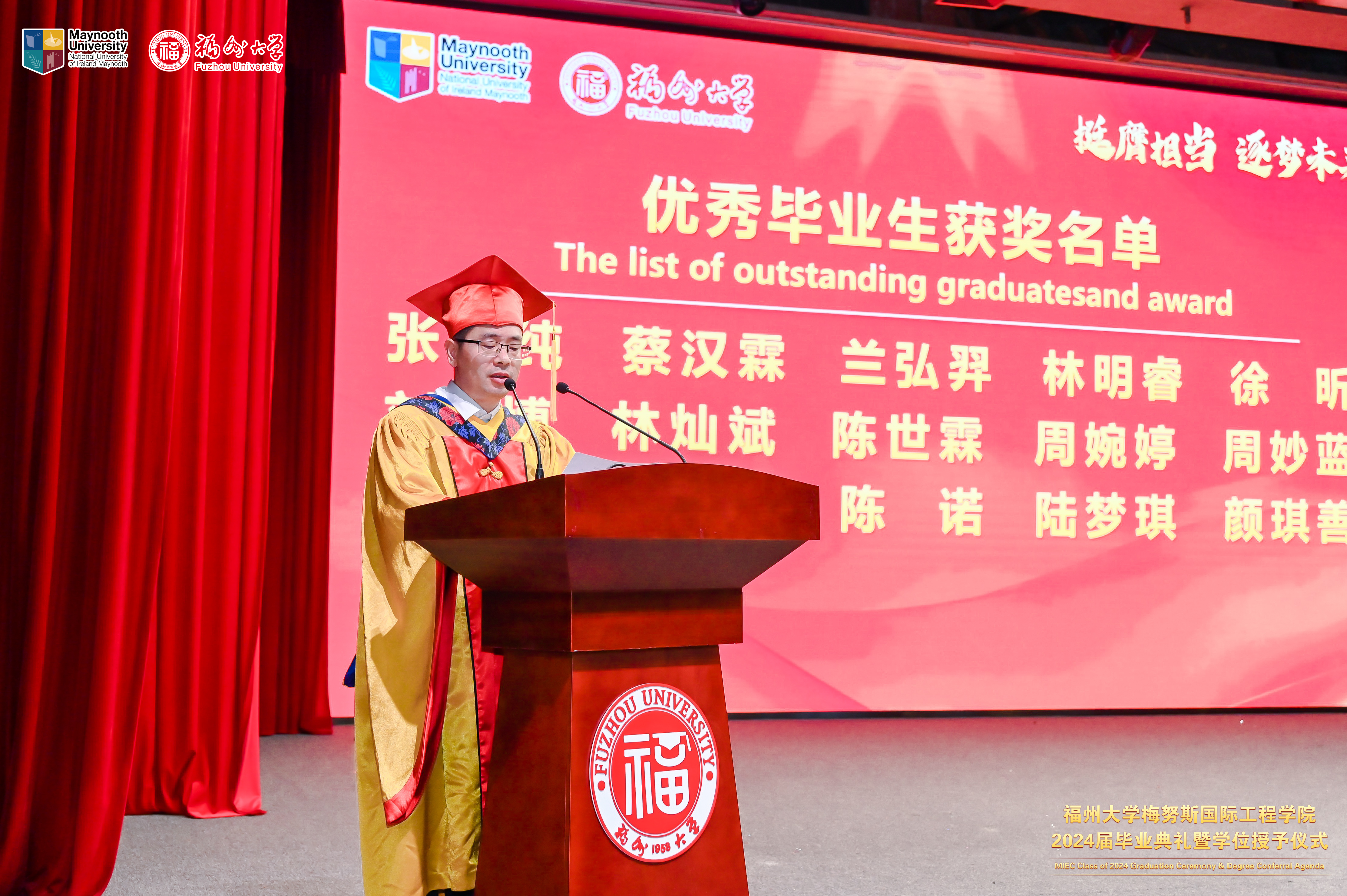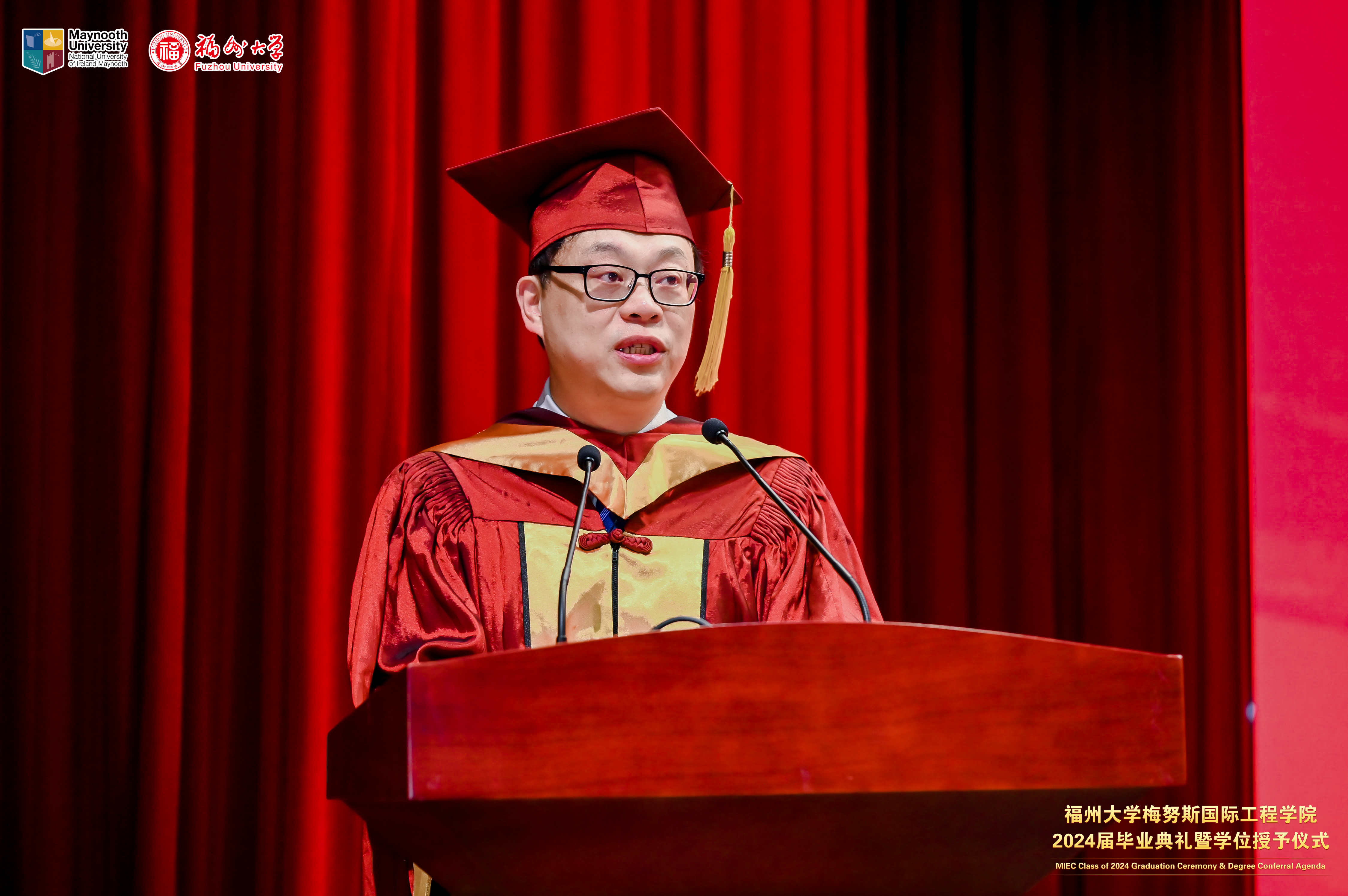 梅努斯大学副校长Patrick McCole教授代表梅努斯大学为全体毕业生们带来了8000公里外的祝福。祝愿同学们带着积累的知识和技能,秉持着创新精神和卓越追求,在未来的世界中,在各自选择的道路上不断迎接挑战,书写新的辉煌成就。